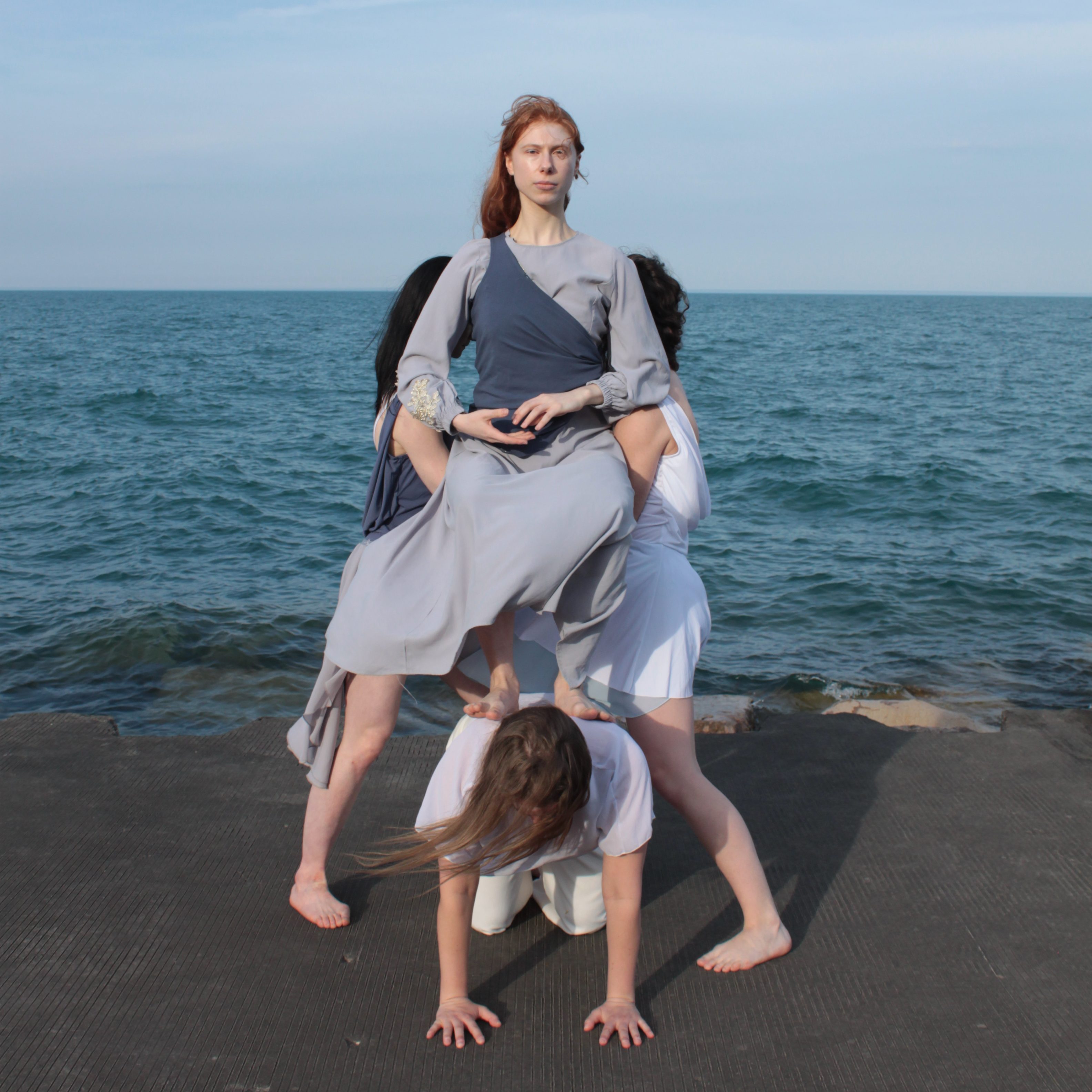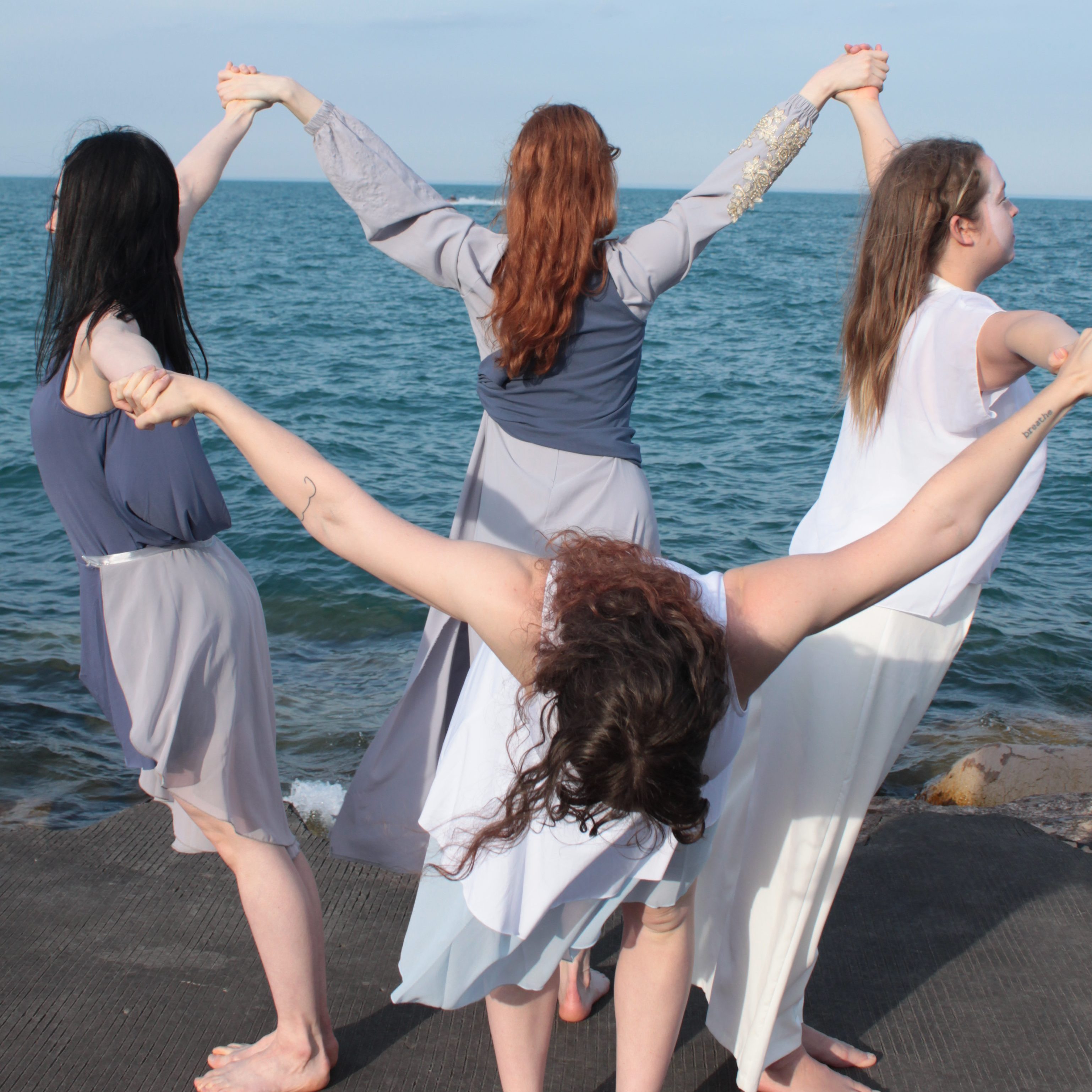 The Four Faced Woman gazes down from her throne in the sky. At midnight the seed of life bursts forth into a fragile, magic, creature. As woman pushes through time, she evolves from Babe, to Youth, to Adult, to Elder, discovering her inner-power and cycling through vitality over and over again.